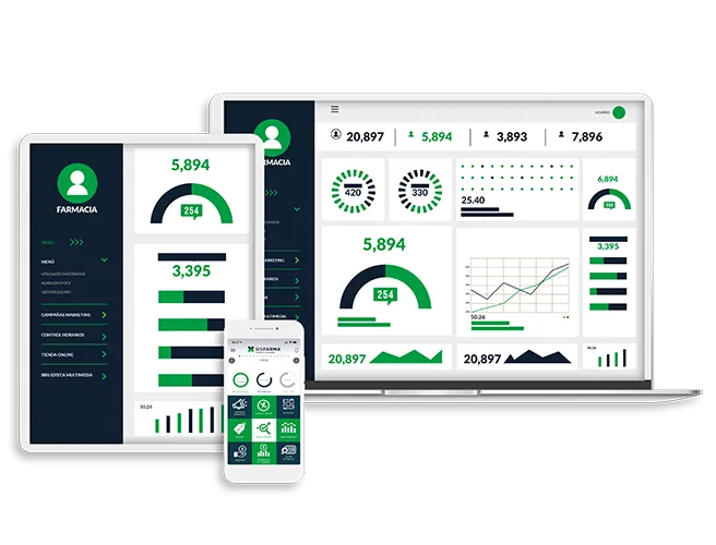 Todo esto se visualiza desde una única plataforma de análisis, control y estrategia que centraliza la información clave de tu farmacia, conecta con tu software habitual y te permite tomar decisiones con criterio, enfocadas en mejorar la rentabilidad y la gestión del negocio.